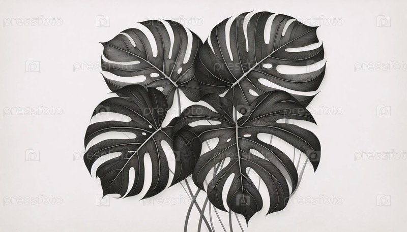 Ботаническая художественная печать линий из листьев монстров, Ai generated image