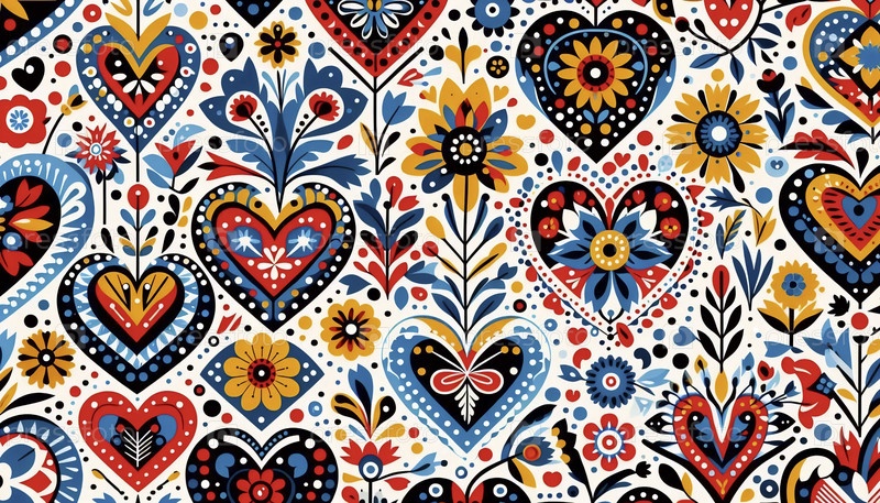 Вибрирующее народное искусство сердца бесшовный шаблон, Ai generated image