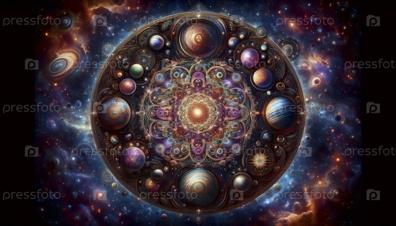 Космическая мандала с планетами, Ai generated image A