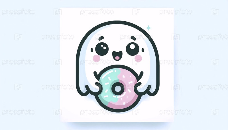 Призрак кавайи с художественным принтом пончиков, Ai generated image