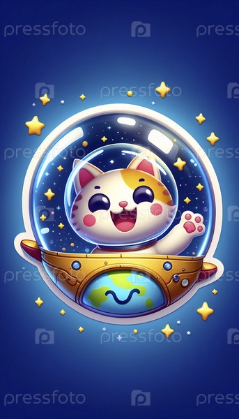 Милый 3D-наклейка кошки астронавт размахивая, Ai generated image