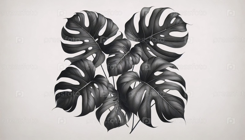 Ботаническая художественная печать линий из листьев монстров, Ai generated image