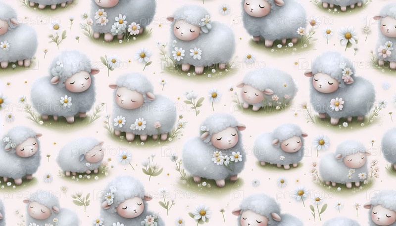 Милый рисунок овцы Бесшовный дизайн, Ai generated image