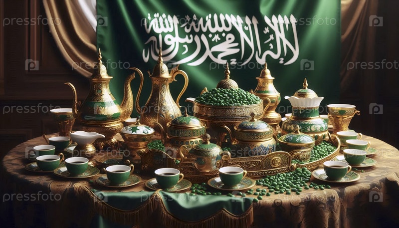 Саудовский флаг в традиционной церемонии кофе, Ai generated image