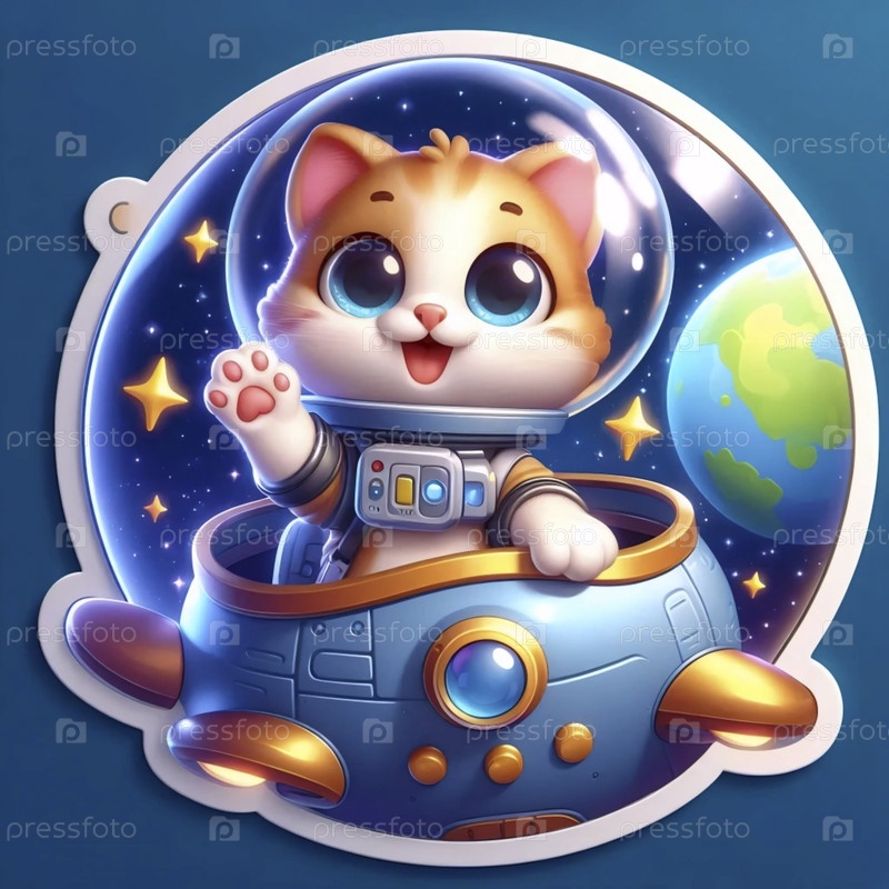Милый 3D-наклейка кошки астронавт размахивая, Ai generated image