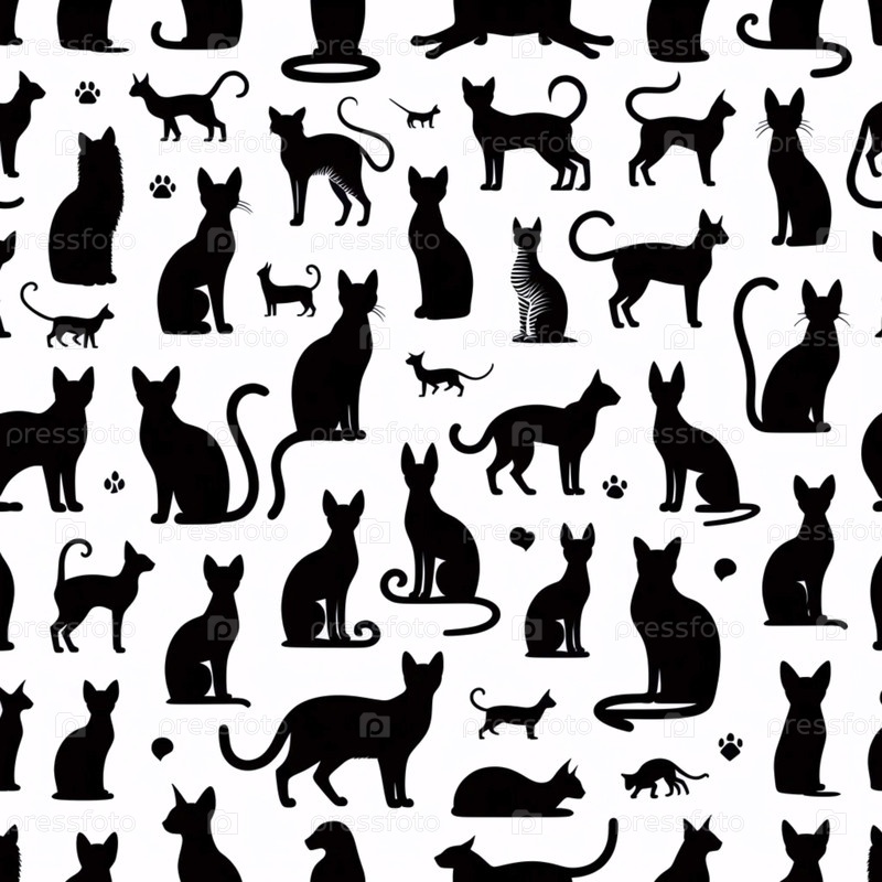 Минималистский образец силуэтов кошачьей породы, Ai generated image