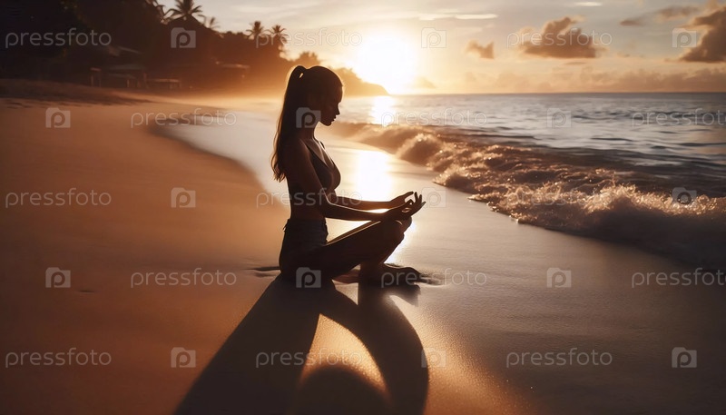 Практика заката солнца в океане, Ai generated image
