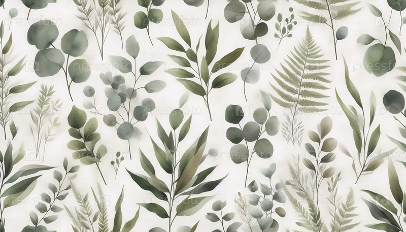 A Boho greenery акварельный рисунок из листьев и ветвей растений, Ai generated image