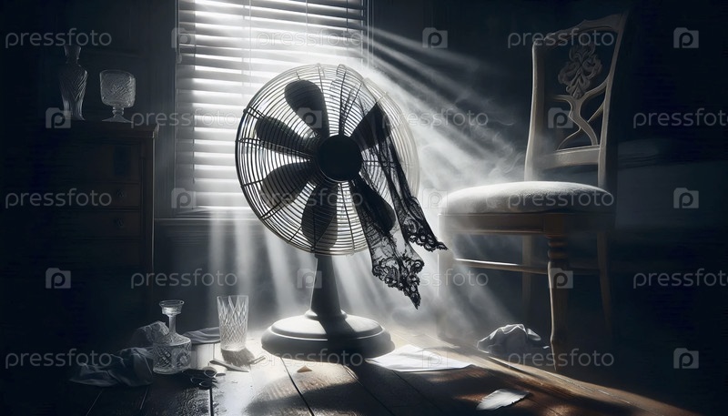 Остановившийся вентилятор с застрявшим внутри куском ткани, Ай создал изображение