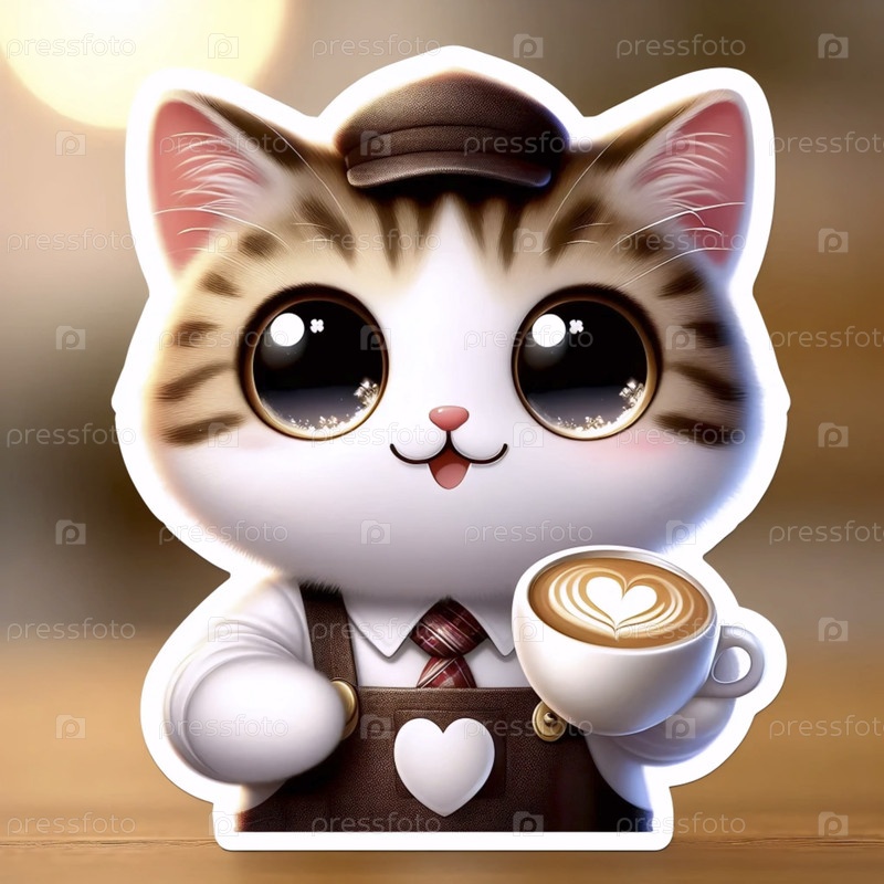 A kawaii cat barista with espresso sticker, Ай создал изображение