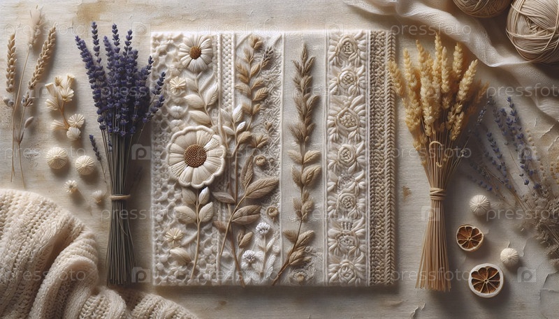 Ботаническое произведение искусства с вязанным узором, Ai generated image