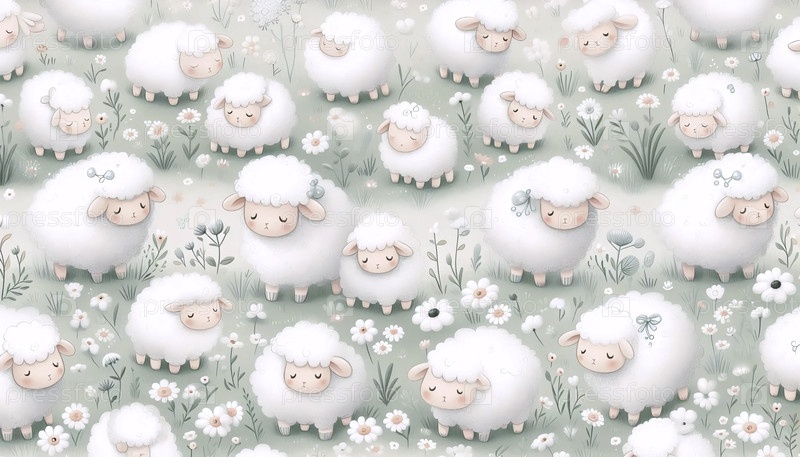 Милый рисунок овцы Бесшовный дизайн, Ai generated image