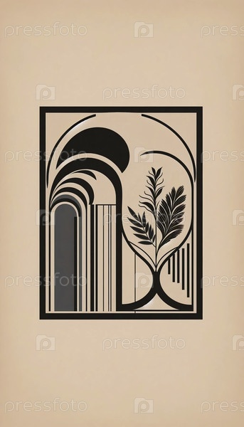 Нейтральная бохо-геометрическая печать с арками, Ai generated image