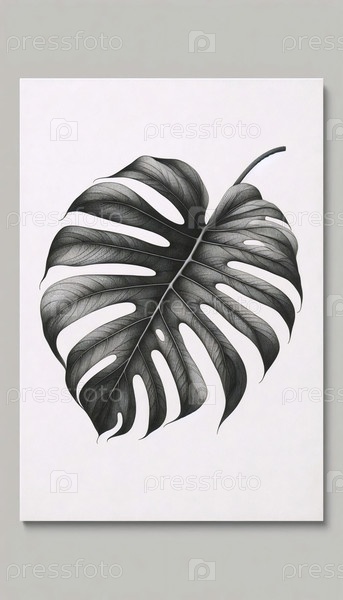 Ботаническая художественная печать линий из листьев монстров, Ai generated image