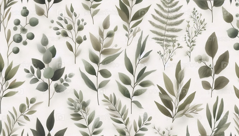 A Boho greenery акварельный рисунок из листьев и ветвей растений, Ai generated image