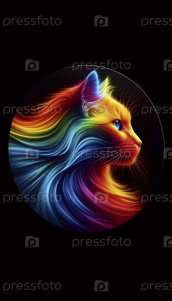 А радужный градиент портрета кошки арт-принт, Ai generated image