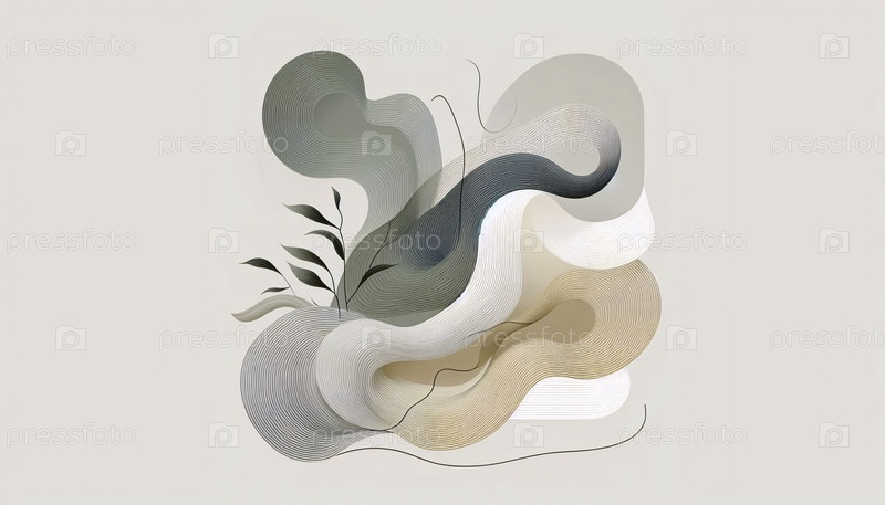 Современная художественная печать в японском стиле в нейтральных тонах, Ai generated image