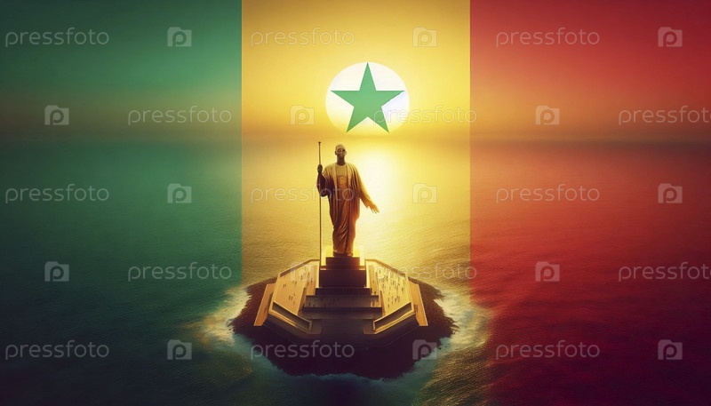 Сенегальский флаг в Дакаре Монумент африканского возрождения, Ai generated image
