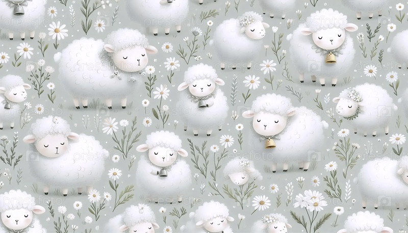 Милый рисунок овцы Бесшовный дизайн, Ai generated image