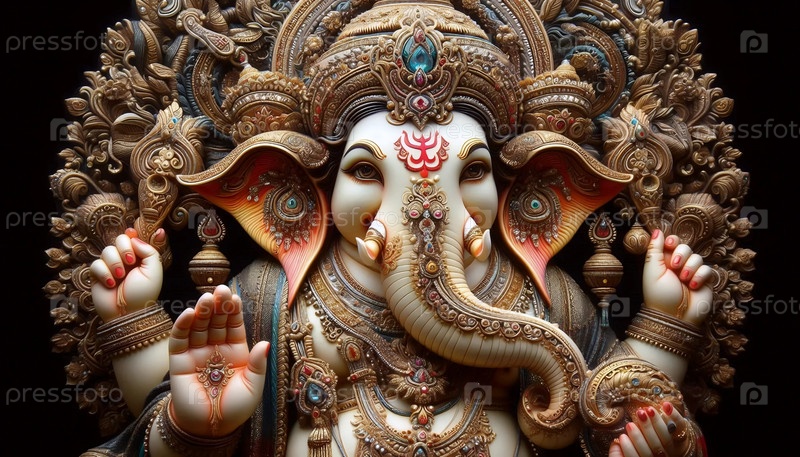 Господь Ганеша с традиционными орнаментами, Ai generated image A