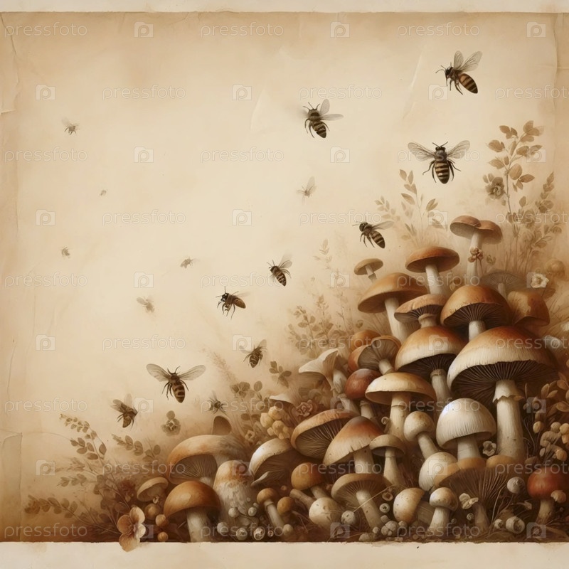 иллюстрация пчел и грибов