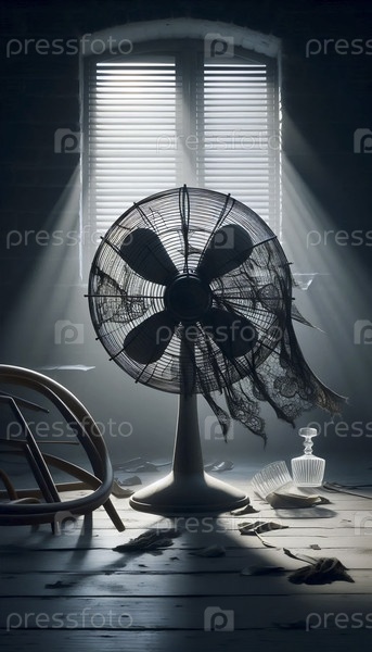 Остановившийся вентилятор с застрявшим внутри куском ткани, Ai создал изображение
