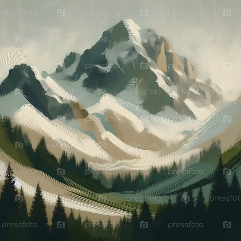 Текстированный художественный пейзаж горного ландшафта, Ai generated image