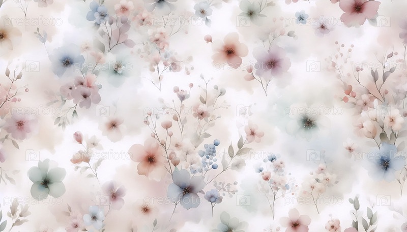 Образец с деликатными акварельными цветами в пастельных тонах, Ai generated image