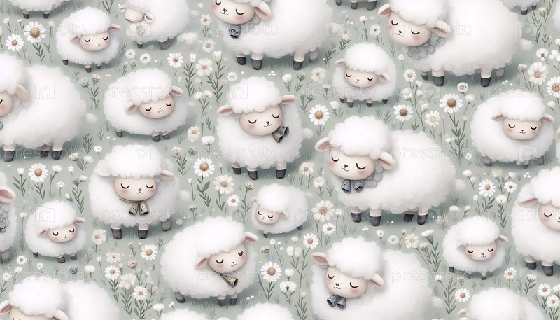 Милый рисунок овцы Бесшовный дизайн, Ai generated image