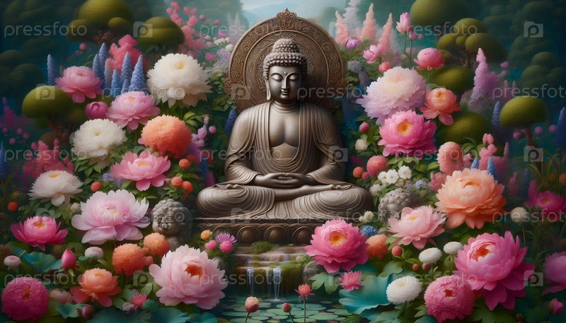 Буддийский цветущий сад, Ai generated image