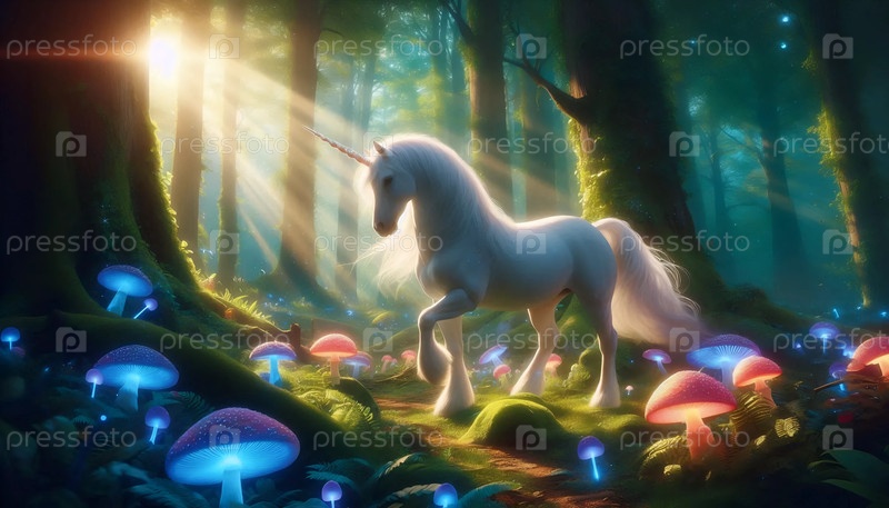 Единорог в зачарованном лесу, Ai generated image