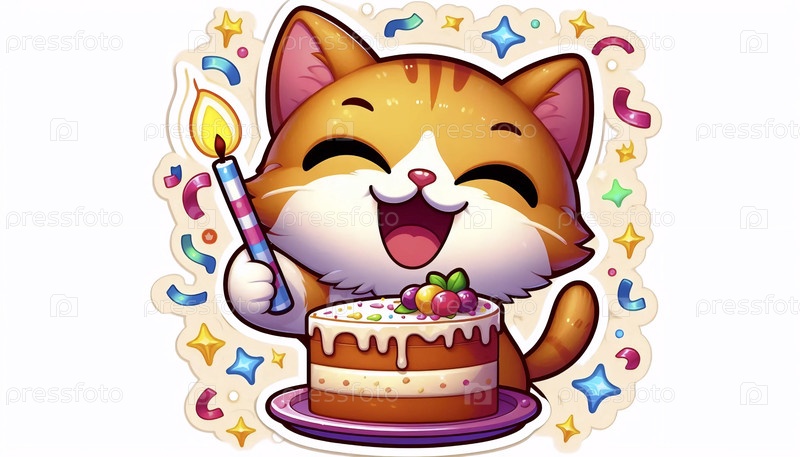Смеющийся кот с наклейкой на рождественском торте, Ai generated image