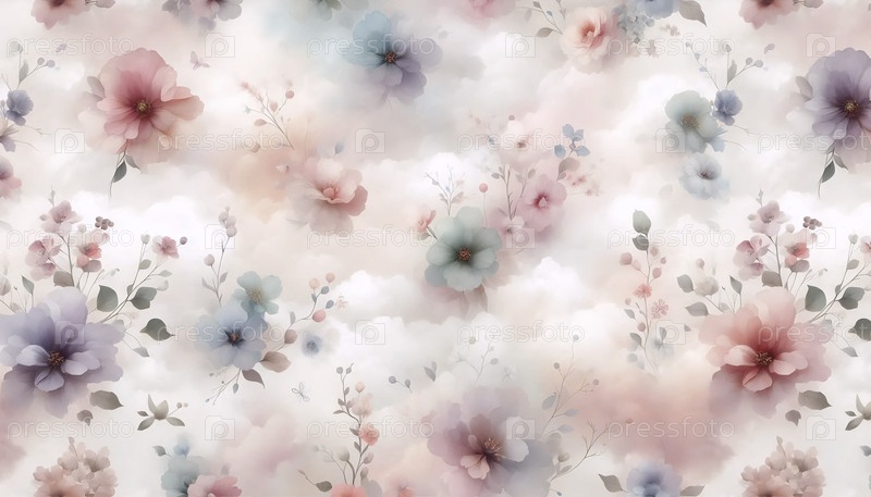 Образец с деликатными акварельными цветами в пастельных тонах, Ai generated image