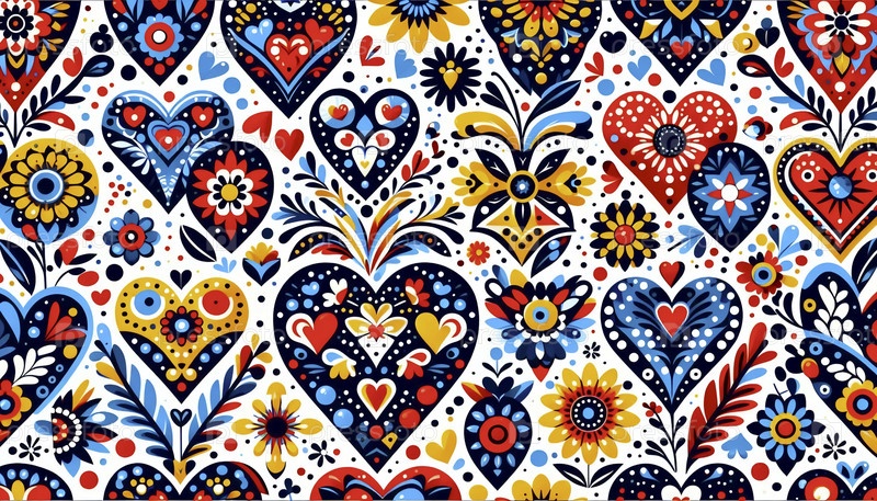 Вибрирующее народное искусство сердца бесшовный шаблон, Ai generated image