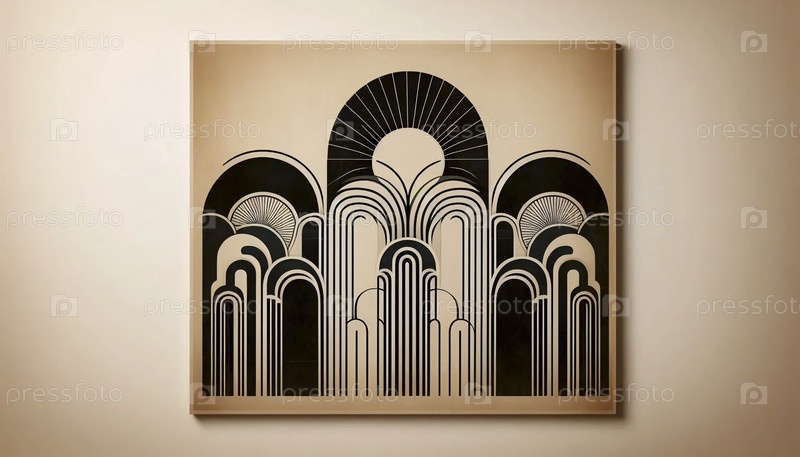 Нейтральная бохо-геометрическая печать с арками, Ai generated image