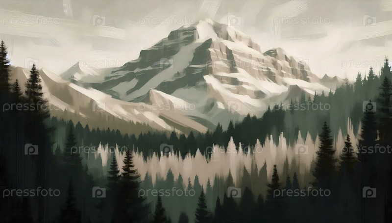 Текстированный художественный пейзаж горного ландшафта, Ai generated image