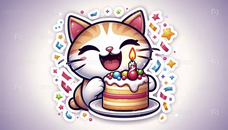 Смеющийся кот с наклейкой на рождественском торте, Ai generated image