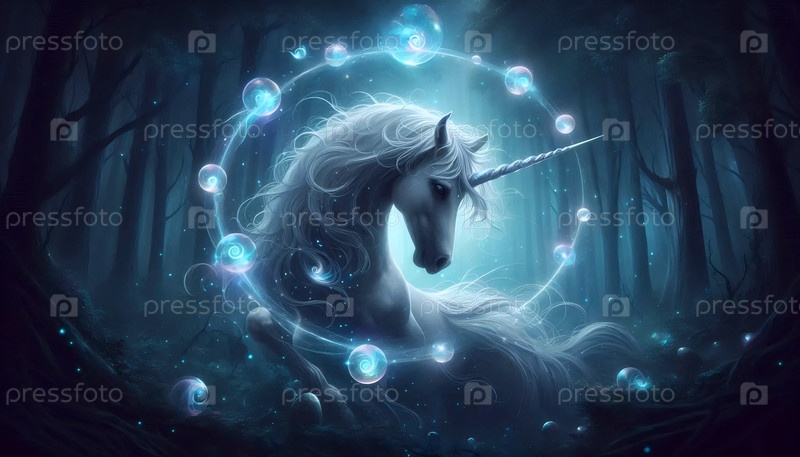 Единорог с волшебными сферами, Ai generated image
