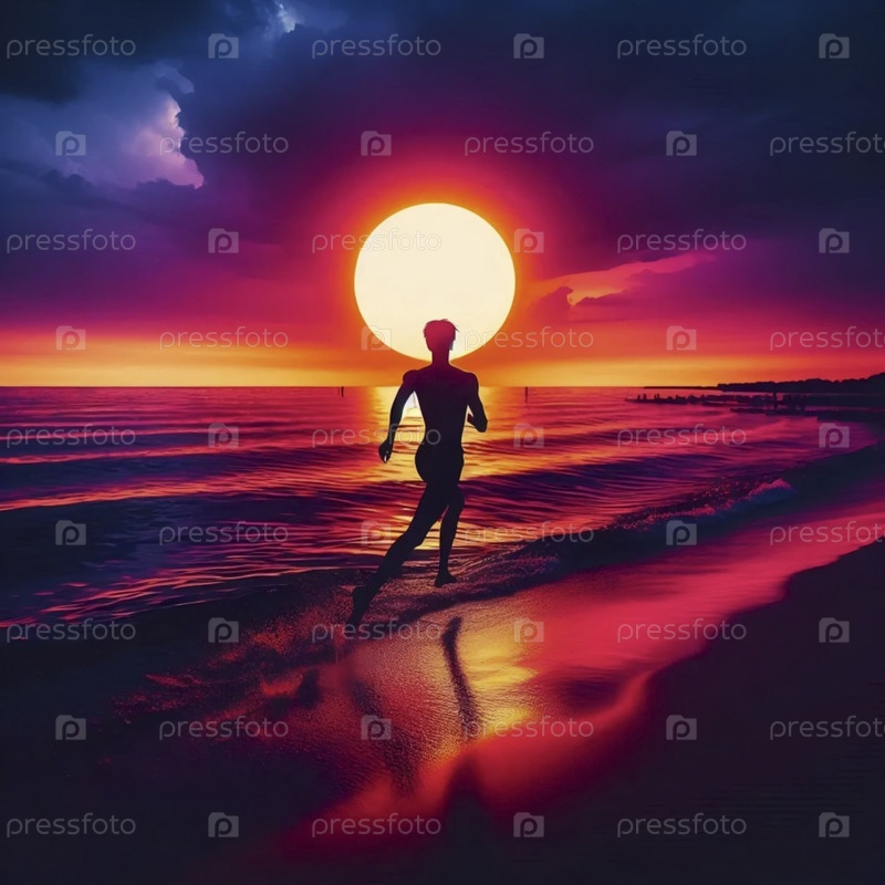 Силуэт заката солнца на берегу, Ай создал изображение