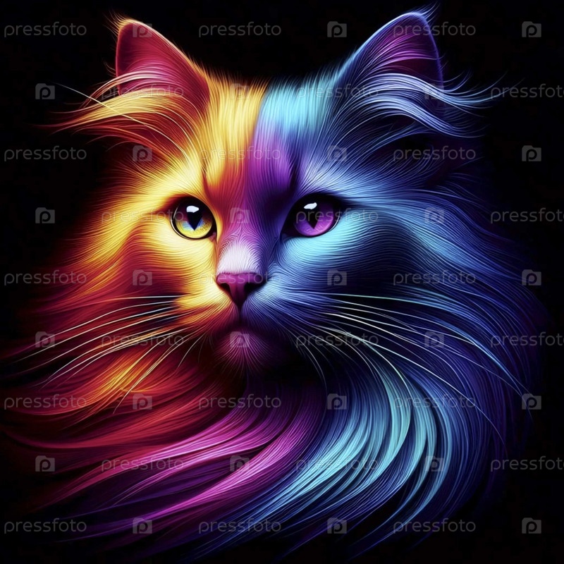 А радужный градиент портрета кошки арт-принт, Ai generated image