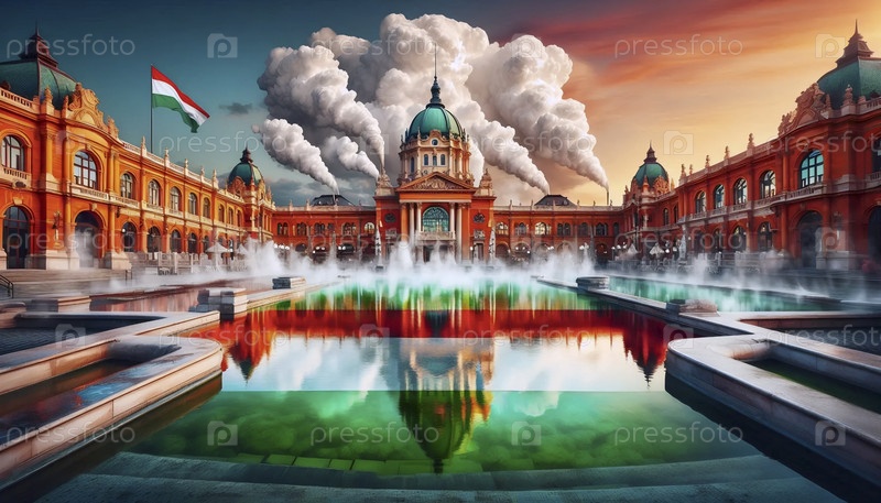 Венгерский флаг в культуре термальных курортов, Ai generated image A