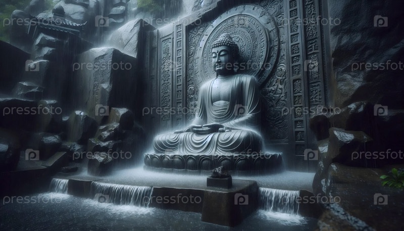 Буддийская медитация дождь, Ai generated image