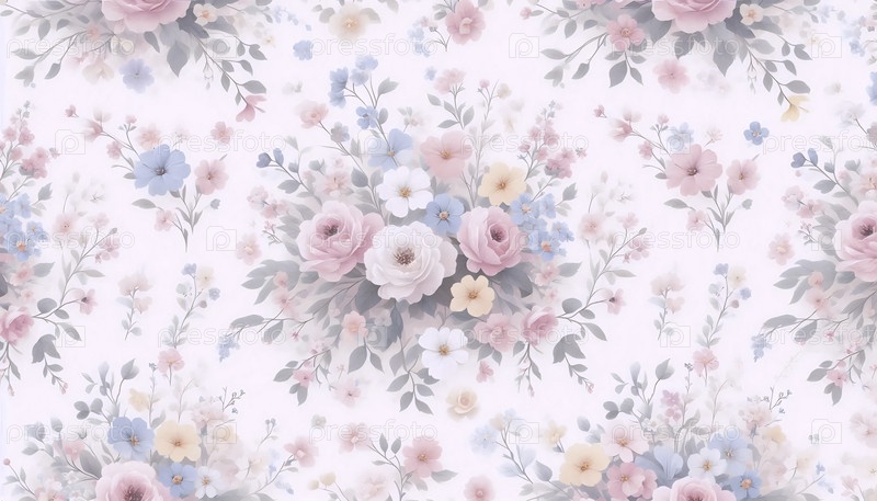 Бесшовный пастельный цветочный печат, Ai generated image