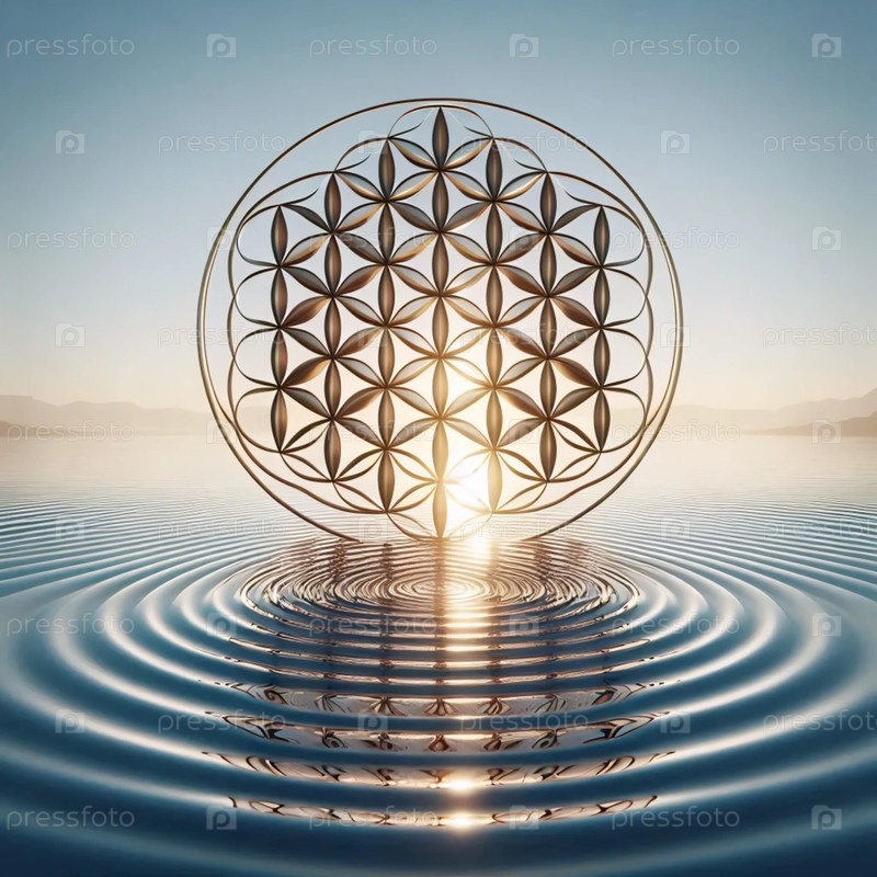 Цветок жизни в водяных волнах, Ai generated image