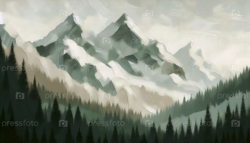 Текстированный художественный пейзаж горного ландшафта, Ai generated image