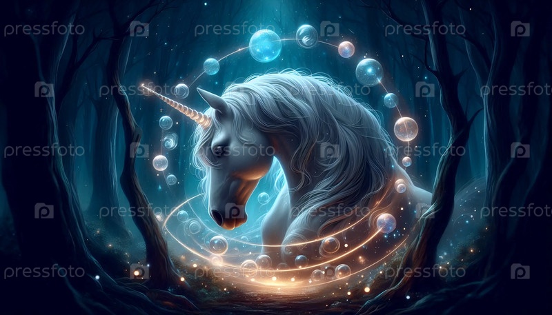 Единорог с волшебными сферами, Ai generated image