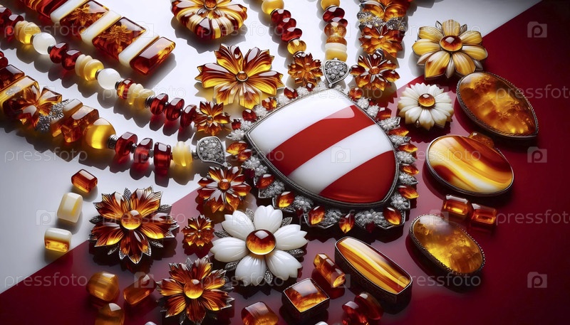 Польский флаг в янтарном ювелирных украшениях ремесло, Ai generated image A