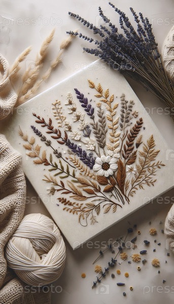 Ботаническое произведение искусства с вязанным узором, Ai generated image