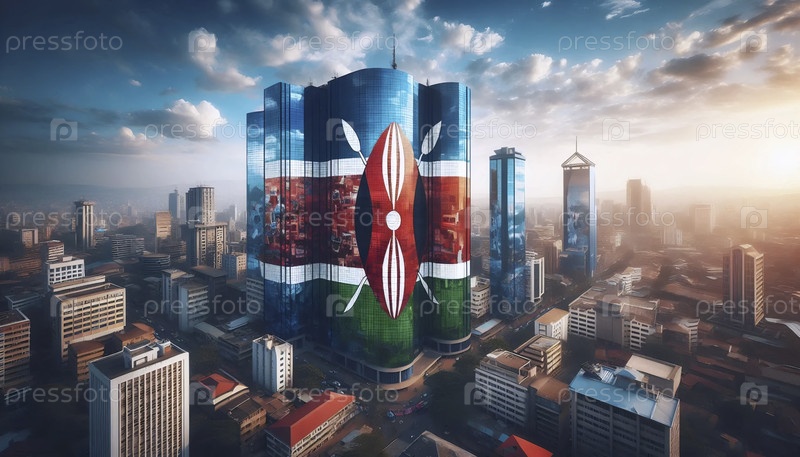 Кенийский флаг на современном горизонте Найроби и городского искусства, Ai generated image A