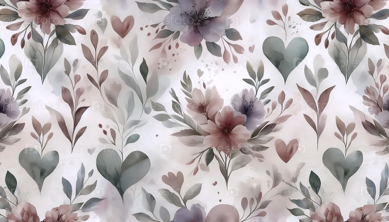 Водяной акварель кровоточащие сердца цветочный бесшовный рисунок, Ai generated image